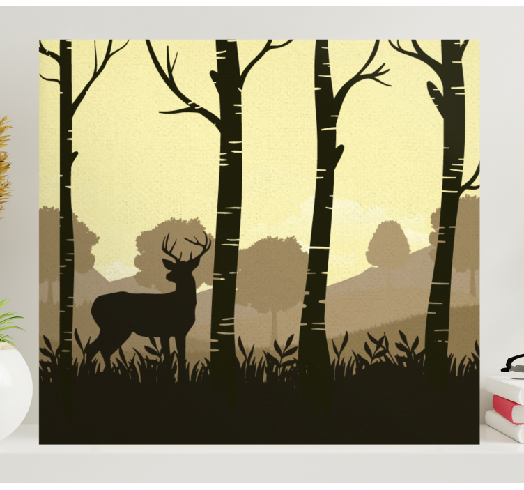 Et Hjorte lerretsbilde med hjort i silhuett blant trær hjorte lerretsbilde er mer enn bare en dekorasjon; det er en kilde til inspirasjon! Dette kunstverket kan forvandle ethvert rom til en oase av fred og skjønnhet. Den enkle, men imponerende silhuetten av hjorten, kombinert med den naturlige bakgrunnen, skaper en atmosfære som inviterer til refleksjon og ro. Enten det er i stuen, soverommet eller kontoret, vil dette bildet gi liv til veggene dine og gi et hint av naturens underverker!