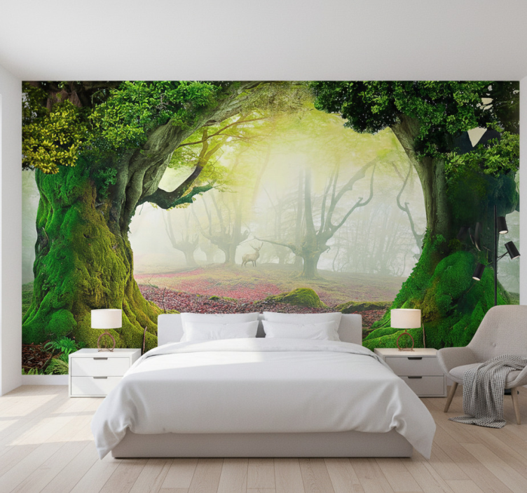Fototapet natur evig skogportal fototapet natur er mer enn bare veggdekorasjon; det transformerer rommet ditt til en fredelig oase. Dette vakre tapetet gir en illusjon av å være midt i en magisk skog, og skaper en atmosfære av ro og harmoni. Perfekt for stuen, soverommet eller kontoret, vil dette designet inspirere deg hver dag og gjøre hverdagen mer livlig!