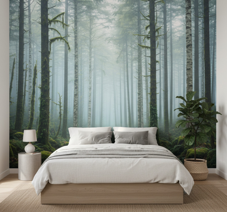 Fototapet skog atmosfærisk tåke veggmaleri
