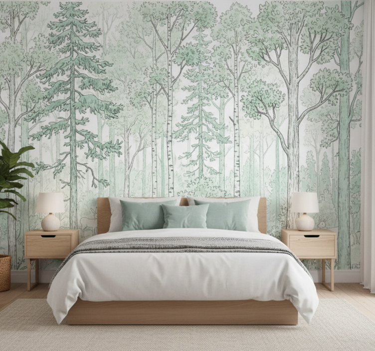 Med Fototapet skog mint skisse fototapet skog får du en unik mulighet til å skape en atmosfære av ro og harmoni i ditt hjem. Dette designet gir en følelse av å være omfavnet av naturen, noe som kan bidra til å redusere stress og øke trivselen i hverdagen. Å dekke veggene med dette vakre tapetet er en enkel måte å friske opp ditt interiør på, og det vil utvilsomt gi et imponerende inntrykk på gjestene dine. Skap en inspirerende oase hvor du kan slappe av og nyte livet!