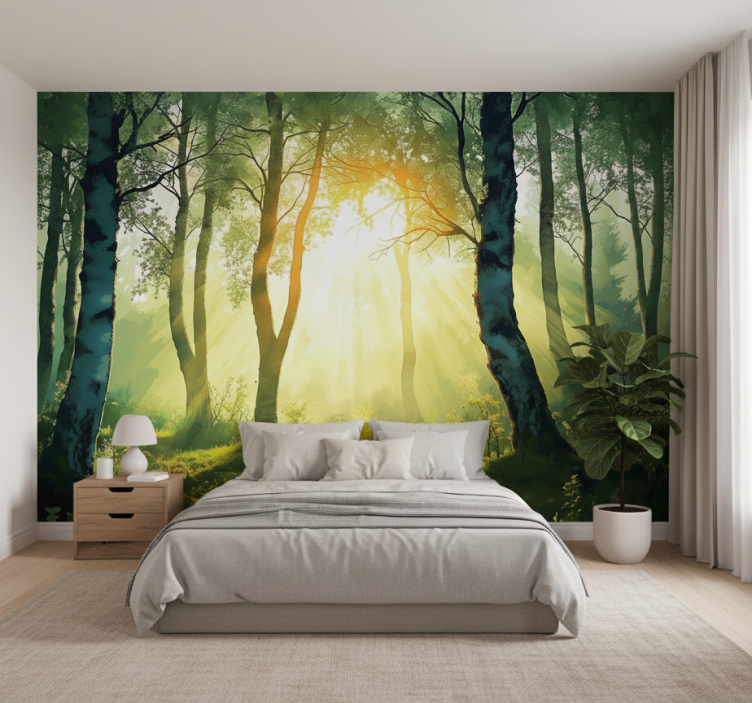 Referanse:: F11953Oppdag vårt fantastiske fototapet skog solfylt bjørk mural som bringer naturens skjønnhet inn i hjemmet ditt! Dette veggmaleriet har et grafisk design preget av matte farger og et fortryllende motiv av solfylte bjørker som skaper en harmonisk og beroligende atmosfære. Med sitt non-woven materiale, er det både enkelt å påføre og vedlikeholde, noe som gir deg muligheten til å forvandle rommet ditt på en praktisk og stilfull måte!