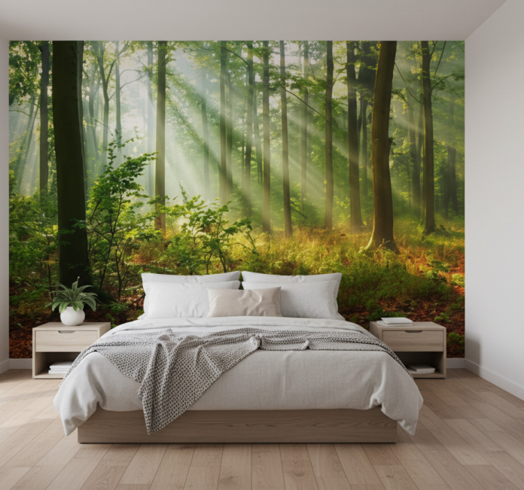 Referanse:: F11924Oppdag vårt fantastiske fototapet skog solfylt morgenlund som fanger essensen av en fredelig skog i solfylt morgenlys. Dette veggmaleriet er designet med matte farger som gir et naturlig og beroligende preg til ethvert rom. Den non-woven tapeten er enkel å påføre og kommer til liv med et vakkert landskapsmotiv som gir en illusjon av dybde og rom. Når du ser på dette tapetet, vil du umiddelbart føle deg transportert til en solfylt skog, omfavnet av naturens skjønnhet.