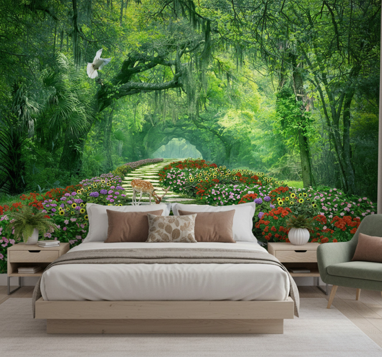 Referanse:: F11954Oppdag det unike designet av vårt fototapet skog surrealistisk skogsti, som tar deg med på en visuell reise gjennom en drømmeaktig, frodig skog. Dette veggmaleriet er laget med matte farger som gir et stilrent utseende, og er produsert i non-woven tapetmateriale som sikrer enkel påføring og langvarig holdbarhet. Med en gramvekt på 180 gram per kvadratmeter, er dette fototapetet både robust og lett å håndtere. La deg inspirere av naturens skjønnhet og skap en magisk atmosfære i hjemmet ditt!