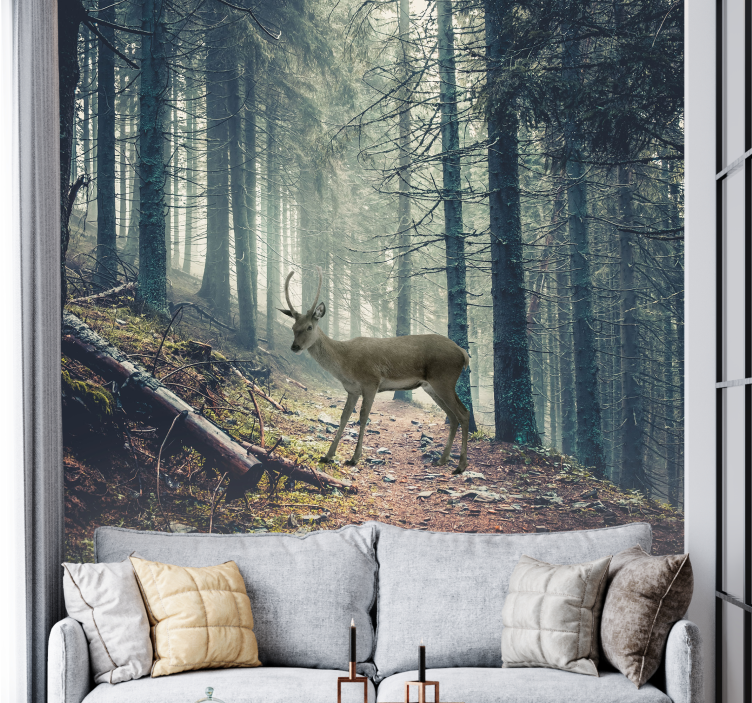 Sti i skogen med en hjort natur fototapet