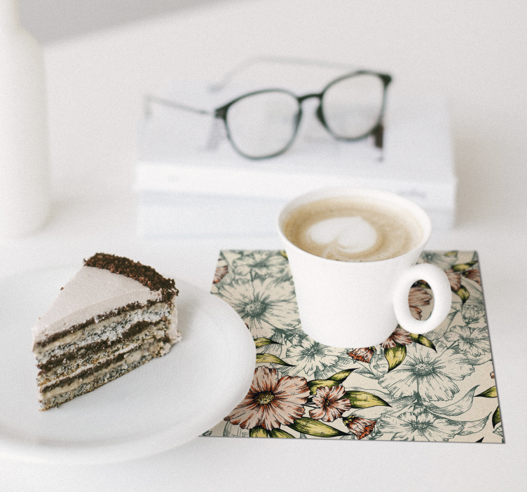 Kombinasjonen av grå og fargede blomster gir denne vintage coasteren et elegant og tidløst utseende.