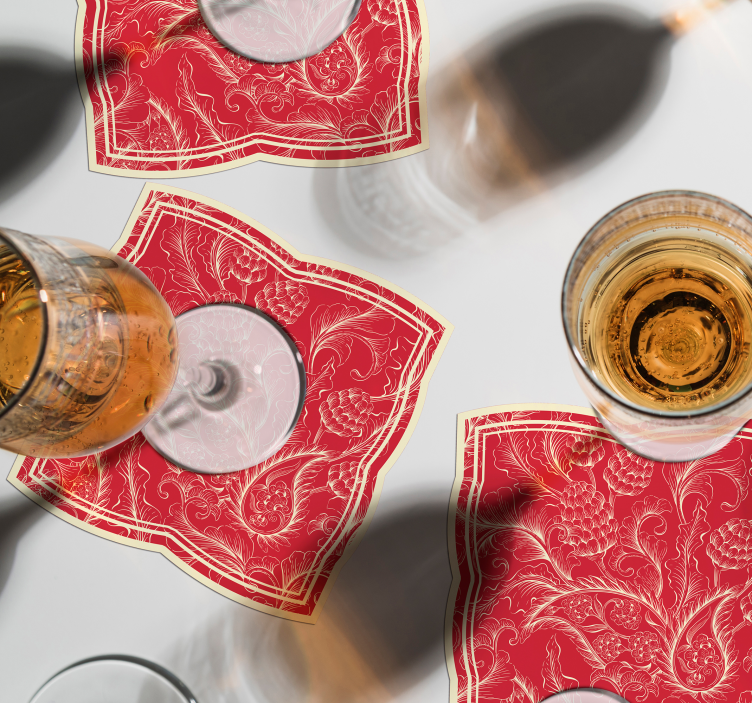 Det ornate floral pattern underlag er en fest for øynene! Designet kombinerer vakre paisley-mønstre med utsmykkede blomster, omrammet av en elegant tekstur i en dyp rød nyanse. Hver detalj er nøye utformet for å gi et sofistikert preg til ethvert rom.