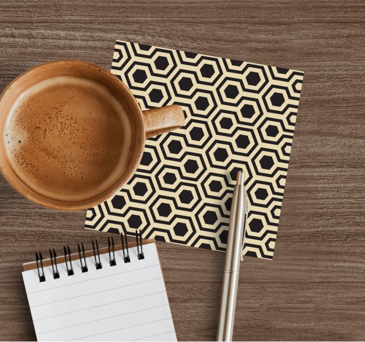 Oppdag vårt fantastiske underlag med bikake mønster design, som kombinerer moderne grafisk kunst med funksjonalitet! Dette unike designet, med sine sekskanter og geometriske former, gir et stilrent preg til ethvert rom. De iøynefallende svart og beige fargene skaper en elegant atmosfære, samtidig som det gjentatte mønsteret gir en følelse av harmoni og balanse.