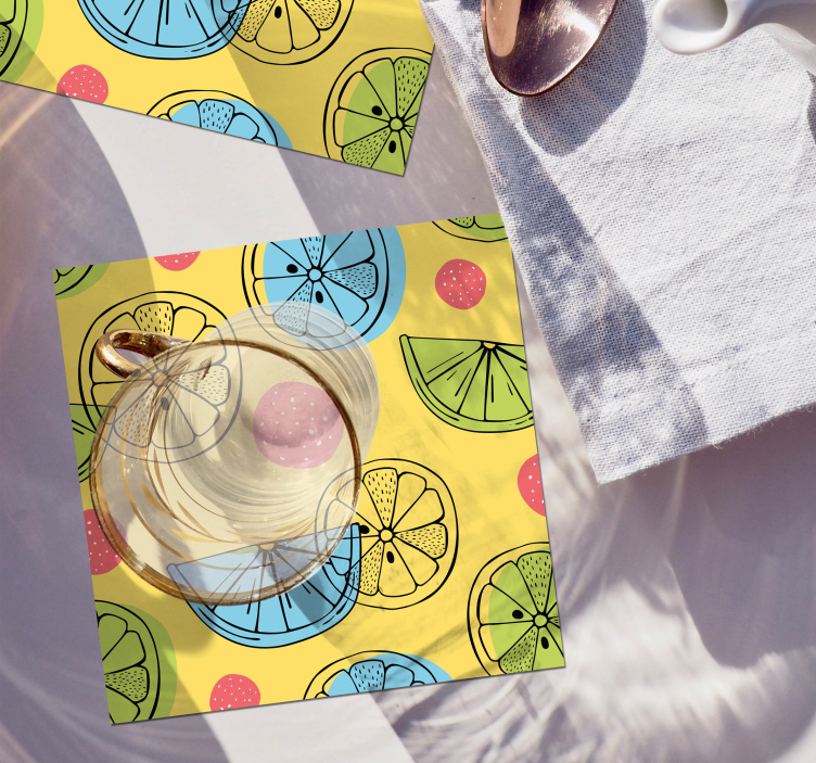 Oppdag vårt fantastiske Underlag nerdete fargerikt sitrusmønster, hvor hvert eneste design er en grafisk fest for øynene! Dette unike underlaget er prydet med tegninger av sitroner og skiver i et mønster som hyller sitrus og frukt. Den levende og kreative stilen gir en sommerlig og leken atmosfære til ethvert rom!