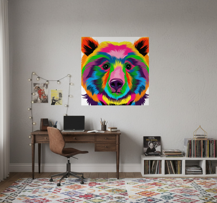 En fargerik bjørn plakate stue er den perfekte dekorasjonen for å lyse opp hjemmet ditt! Den tiltrekker seg oppmerksomhet og gir en koselig følelse i stuen. Plakaten passer utmerket inn i ethvert rom, uansett stil, og kan være den siste touchen som binder interiøret sammen. La den fargerike bjørnen inspirere deg og dine gjester med sitt livlige uttrykk!
