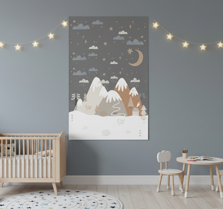 Bruk Fjell barneplakate til å forvandle barnerommet med enkelhet! Plakaten kan lett plasseres på hvilken som helst flat overflate, og den er enkel å installere. For et ekstra profesjonelt resultat, vurder å bruke en slikkepott for å sikre perfekt feste. La fantasien få fritt spillerom og gjør rommet til et unikt sted!