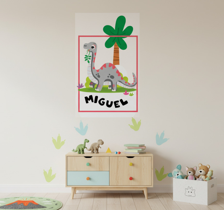 Bruk denne grå langhals dinosaur barneplakate for å skape en koselig atmosfære i barnerommet! Den kan enkelt henges opp på veggen, og den vil umiddelbart forvandle rommet til et spennende sted for lek og læring. Plakaten er lett å installere og passer perfekt sammen med annen barneinnredning!