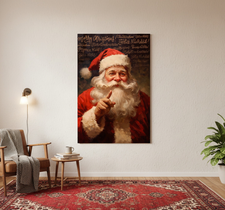En juleplakat med portrett av julenissen juleplakat er en perfekt måte å bringe julestemning inn i hjemmet ditt! Denne plakaten fungerer ikke bare som en dekorasjon, men som et midtpunkt som skaper glede og nostalgi. Den fargerike designen og de varme tonene vil lyse opp ethvert rom og skape en koselig atmosfære for familie og venner. La julenissen være med på å gjøre feiringen din uforglemmelig!