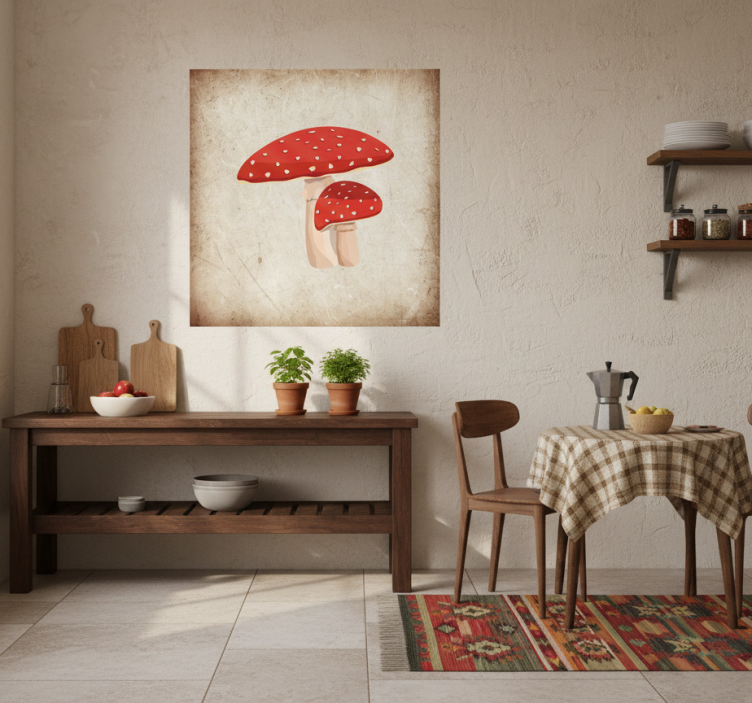 For å bruke kjøkken plakater amanita sopp illustrasjon, er det enkelt å plassere den på hvilken som helst flat overflate. Bare fjern beskyttelsesfilmen og fest plakaten der du ønsker. Det er en rask og effektiv måte å oppgradere rommet ditt på!