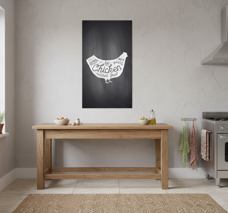 Bruk Kjøkken plakater fersk gårdkylling til å dekorere veggene dine og skape en innbydende atmosfære i kjøkkenet. De kan enkelt plasseres på hvilken som helst flat overflate og er designet for enkel installasjon. Husk at disse plakatene gir et unikt preg til rommet ditt!