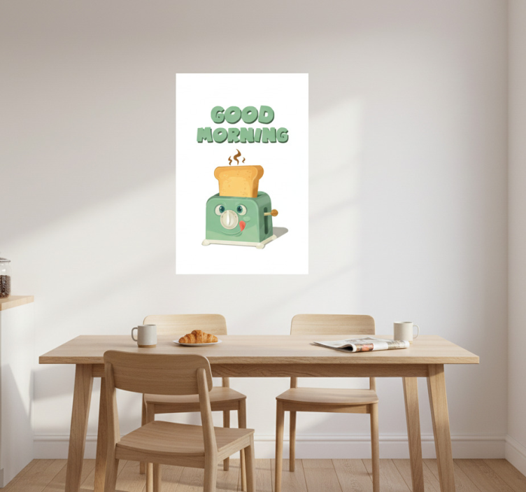 Våre Kjøkken plakater god morgen med brødrister er ikke bare dekorative, de inspirerer til glede og kreativitet i ditt hjem. Hver gang du ser denne plakaten, vil du bli minnet på å nyte de små øyeblikkene i livet. Plakaten fungerer som en flott samtalestarter for gjester og gir en koselig atmosfære til kjøkkenet. Bruk den til å skape et personlig preg i rommet, og la designet lyse opp ditt daglige liv!