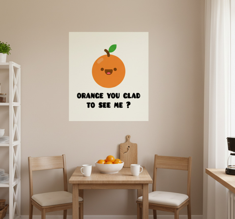 Referanse:: G615Oppdag vår unike Kjøkken plakater morsom sitat med appelsin, designet for å gi en livlig og inspirerende atmosfære til ditt kjøkken! Denne plakaten kombinerer humor med et friskt illustrert design av appelsiner, noe som gjør den perfekt for å lyse opp veggene dine. Den har en satengfinish som reduserer refleksjoner og gir en utmerket fargeintensitet, og den er enkel å rengjøre med en fuktig klut. Med en gramvekt på 80 mikron, innebygget lim og en holdbarhet på ca 8-10 år, er dette klistremerket både motstandsdyktig og vaskbart, noe som gjør det til et ideelt valg for ethvert rom.