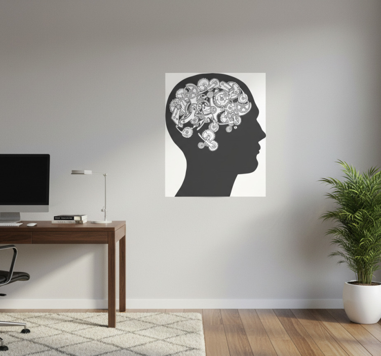 Å bruke Kontor plakat hjerne med tannhjul er enkelt! Heng den opp på veggen bak skrivebordet, i møterommet eller i en kreativ sone for å skape et inspirerende miljø. Den passer perfekt på enhver flat overflate og kan enkelt tilpasses din stil og smak. Det er en flott måte å uttrykke din personlighet og skape en unik atmosfære på kontoret!