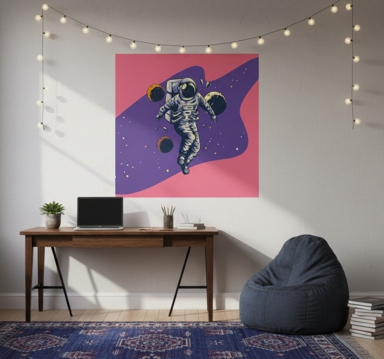 Vår plakat tenåringer håndtegnet astronaut i flukt Plakat tenåringer er ikke bare en dekorasjon, men en inspirasjonskilde! Denne plakaten skaper en magisk atmosfære og oppmuntrer til kreativitet og drømmer. Uansett om det er på soverommet, skoleområdet eller stuen, vil den tilføre et personlig preg og gjøre plasseringen mer livfull. La denne plakaten bli et samtaleemne og en kilde til inspirasjon for unge sjeler!