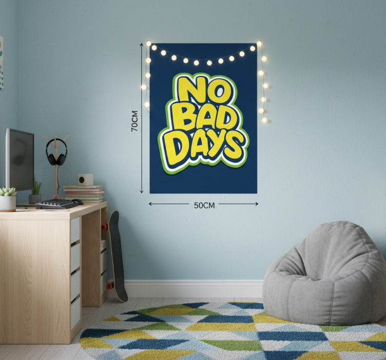 En Plakat tenåringer ungdom ingen dårlige dager Plakat tenåringer er ikke bare en dekorasjon, men også en kilde til inspirasjon. Den minner tenåringer på viktigheten av en positiv holdning og å møte hver dag med et smil. Å ha denne plakaten på veggen kan motivere dem til å omfavne livet og se lysere på fremtiden. Dekorasjonen gjør ethvert rom mer personlig og gir en følelse av glede og ungdommelig energi!