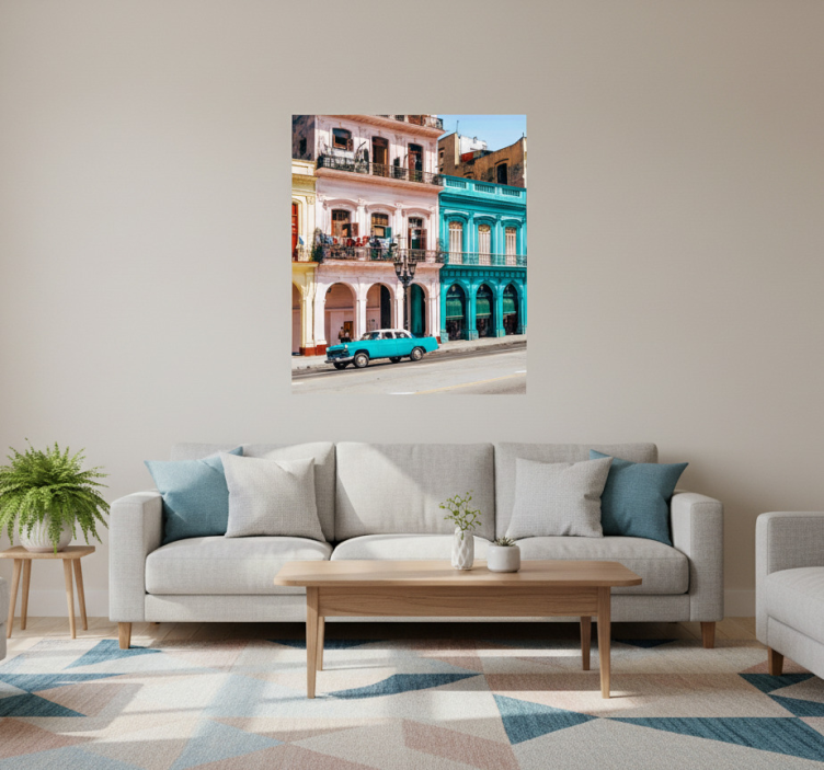 En plakate stue med blå og rosa gate og bildesign er perfekt for å forvandle stuen din til et inspirerende rom. Denne plakaten gir et friskt og moderne uttrykk som kan forvandle enhver vegg til et kunstverk. Den livlige fargekombinasjonen av blått og rosa tilfører en følelse av energi og glede, og gir deg et rom der du kan slappe av og nyte livet. Med en unik design som fanger blikket vil denne plakaten bli et samtaleemne blant dine gjester!