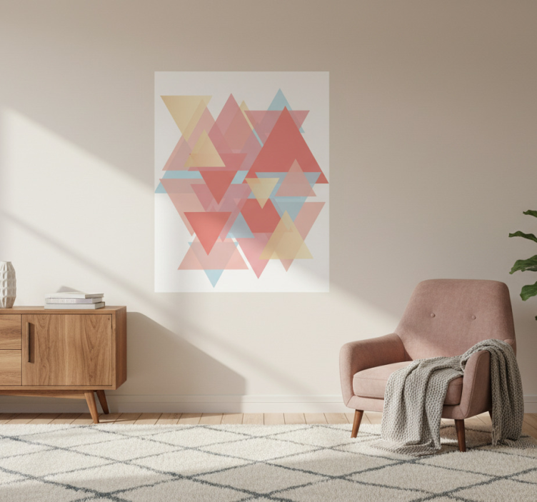 En plakate stue rosa og gyldne trekantformer plakate stue er den ideelle løsningen for å piffe opp ethvert rom. Den lyse fargepaletten og de geometriske formene gir en moderne og stilfull atmosfære. Uansett om du ønsker å skape en koselig krok for å slappe av, eller et inspirerende arbeidsområde, vil denne plakaten være et fantastisk valg. La den bli midtpunktet i rommet, og opplev hvordan den løfter humøret og energien!