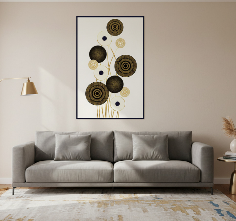Referanse:: G858Oppdag vår fantastiske plakate stue sirkler glamour dekorasjon, et grafisk design som kombinerer elegante sirkler med en moderne estetikk. Dette produktet er skapt for å gi rommet ditt et sofistikert preg, med en satengfinish som sikrer at lyset ikke skaper refleksjoner, samtidig som fargene fremstår med en intensitet som virkelig fanger oppmerksomheten. Med en gramvekt på 80 mikron og et innebygd lim, er denne plakaten ikke bare vakker, men også holdbar og praktisk!