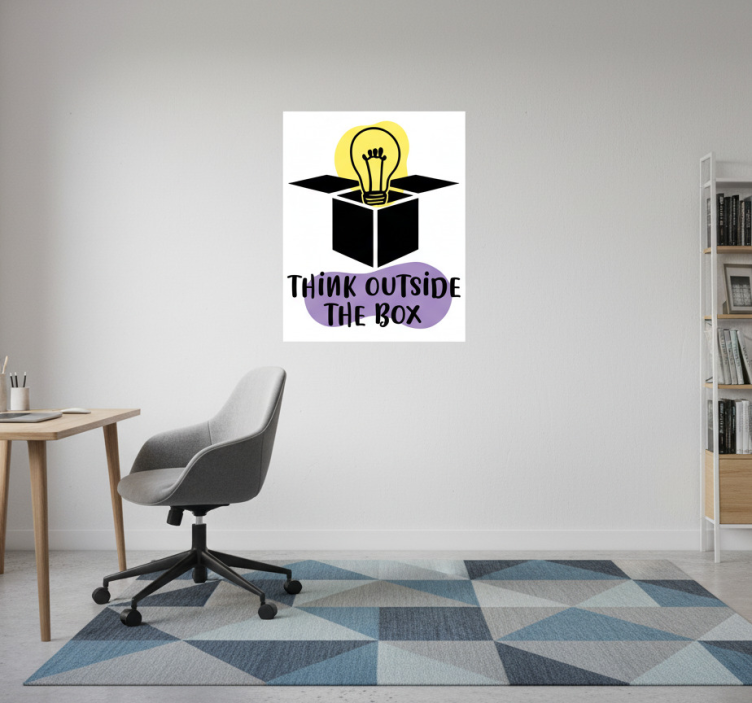 En Tenk utenfor boksen kontor plakat er den perfekte måten å tilføre liv og motivasjon til kontoret ditt. Denne kontor plakaten inspirerer til kreativitet og innovasjon, noe som kan gjøre arbeidsmiljøet mer stimulerende. Med et slikt design kan du enkelt transformere et kjedelig kontor til et inspirerende rom hvor ideer kan blomstre. Gi rommet ditt et løft og skape en positiv atmosfære!