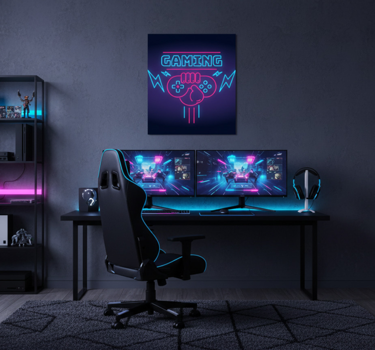 En videospillplakat med neonlys logo er den perfekte dekorasjonen for alle som elsker gaming. Denne plakaten gir ikke bare liv til veggene dine, men skaper også en inspirerende atmosfære. Med sitt fengslende design fungerer den som et blikkfang som vil imponere venner og familie. La den uttrykke din personlige stil og lidenskap for videospill på en moderne og kreativ måte!
