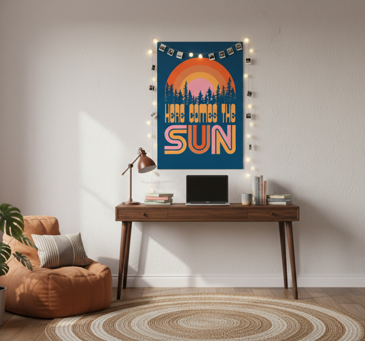 En Vintage sol plakate stue plakate stue er ikke bare en dekorasjon, men et kunstverk som tilfører sjel og karakter til hjemmet ditt! Den vintage stilen gir en nostalgisk følelse som kan transportere deg tilbake til enklere tider. Plakaten fungerer perfekt som et samtaleemne når du har gjester, og skaper en varm atmosfære i stuen. La naturlig lys spille på overflaten og se hvordan fargene kommer til liv, og gjør rommet ditt til et fristed!