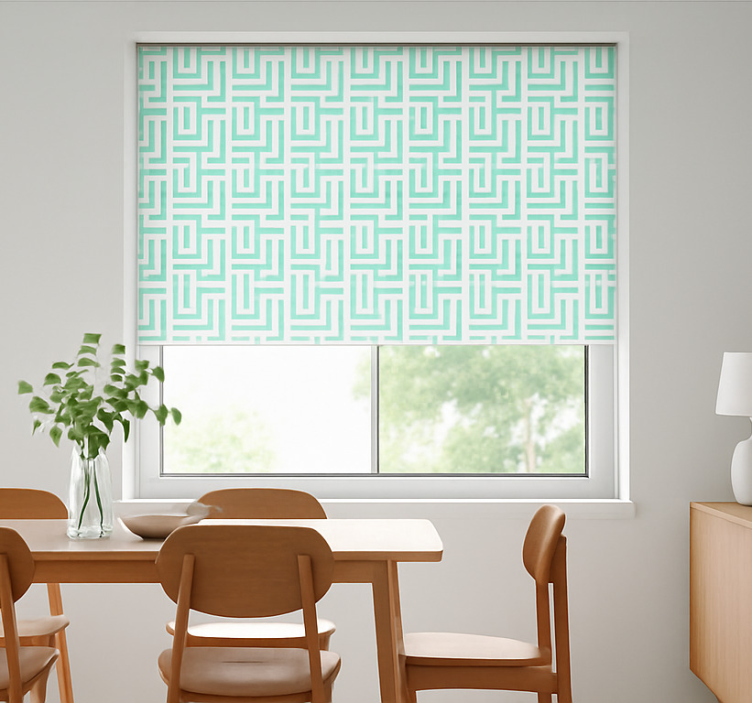 Den blå geometriske firkanter effekt rullegardin spiserom er ikke bare funksjonell, men også en viktig del av interiøret. Denne rullegardinen tilfører dybde og karakter til spiserommet, og skaper en harmonisk balanse mellom stil og komfort. Med sitt moderne design og evne til å filtrere lys, vil den umiddelbart forvandle atmosfæren og gjøre rommet mer innbydende. La deg inspirere av mulighetene denne rullegardinen gir for å skape et personlig preg i ditt hjem!