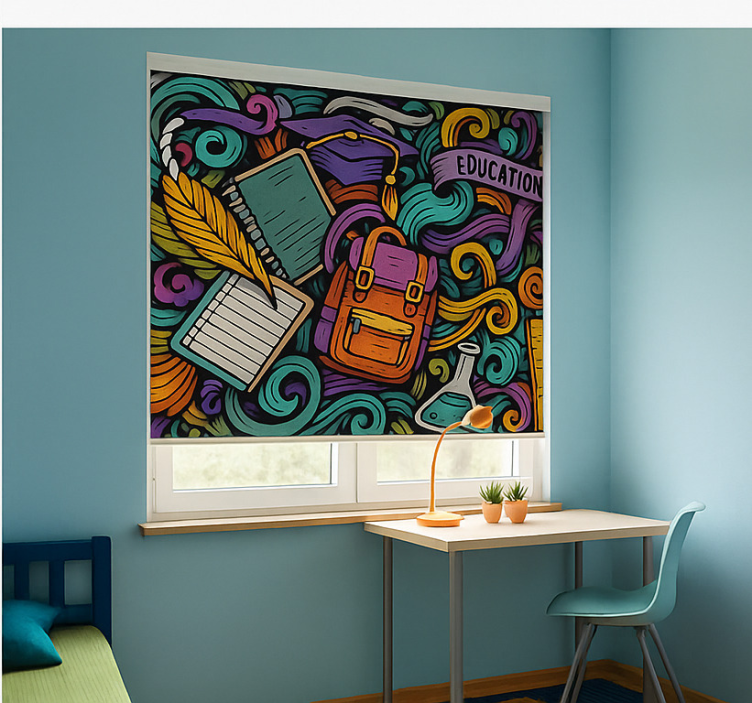 Gi rommet ditt et friskt og livlig preg med vår Fargerike abstrakte objekter rullegardin ungdom. Dette unike designet kombinerer grafiske former og lyse farger, og skaper en inspirerende atmosfære. Rullegardinen er ikke bare en praktisk løsning for lyskontroll, men også en spennende dekorasjon som setter tonen i ethvert rom.