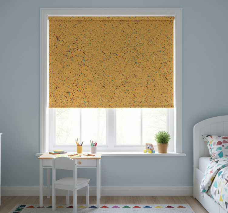 Referanse:: E7104Oppdag fargerike sprut rullegardin barn, som tilfører en lekfull og kreativ atmosfære til ethvert rom! Dette unike designet har flotte grafiske mønstre som vekker fantasien hos barna. Med sin enkle montering kan du få opp rullegardinen med bare 2 klikk, og den er også enkel å rengjøre og demontere. Den gir ikke bare beskyttelse mot direkte sollys, men også et trygt og koselig miljø for barna.