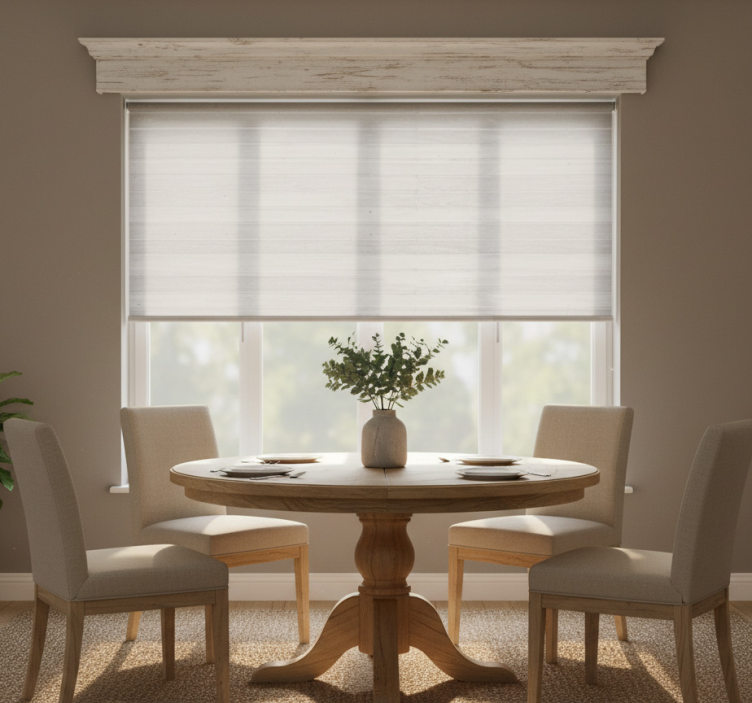 Referanse:: E6559Grå elegante rustikke treplanker rullegardin spisestue