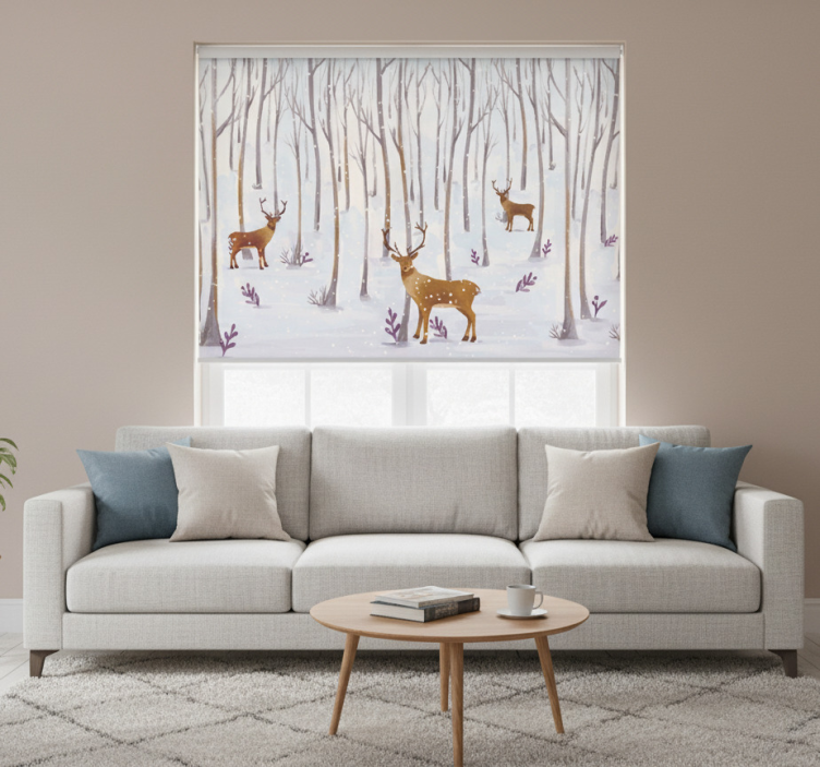 En hvit rullegardin skandinavisk vinterskog med dyr hvit rullegardin er mer enn bare en praktisk løsning for vinduene dine; den er en kunstnerisk dekorasjon som kan forvandle ethvert rom! Den unike designen skaper en koselig atmosfære, perfekt for stuen, soverommet eller barnerommet. Med sitt inspirerende motiv av vinterskog og dyreliv, vil denne rullegardinen bidra til å skape en rolig og fredelig stemning. La deg inspirere av naturens skjønnhet i ditt eget hjem!