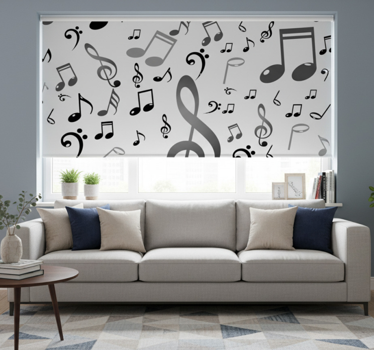 Musikknoter rullegardin stue