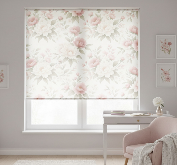 Rosa rullegardin hvit rosa peon blomster