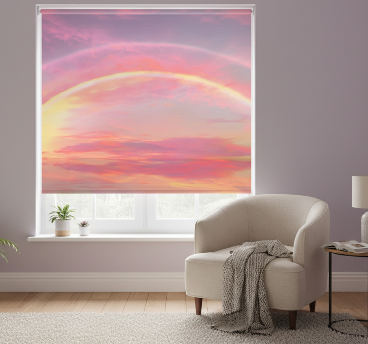 Rosa rullegardin med rosa himmel og regnbue