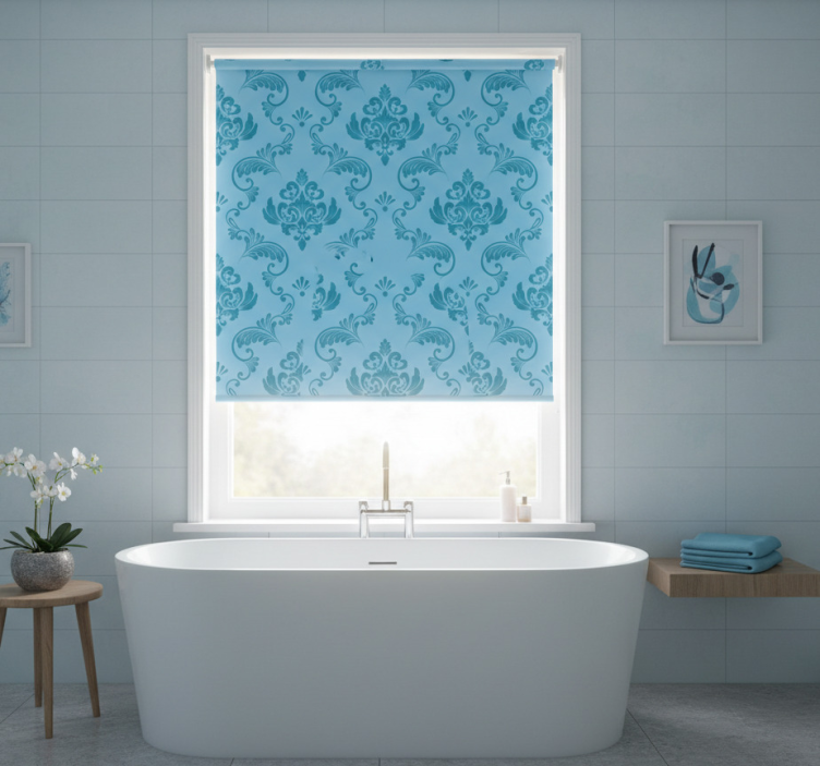 Rullegardin bad blå botaniske kurver