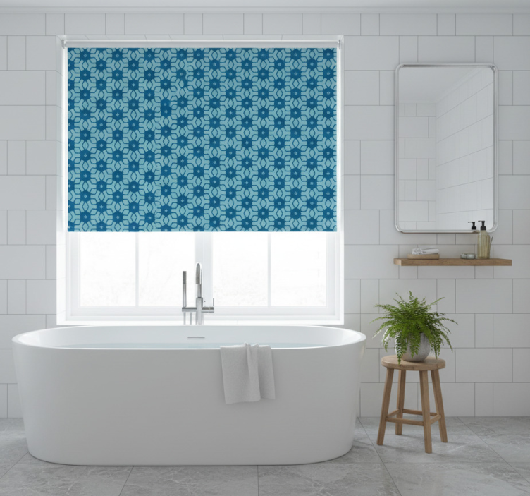 Blå fliser rullegardin bad