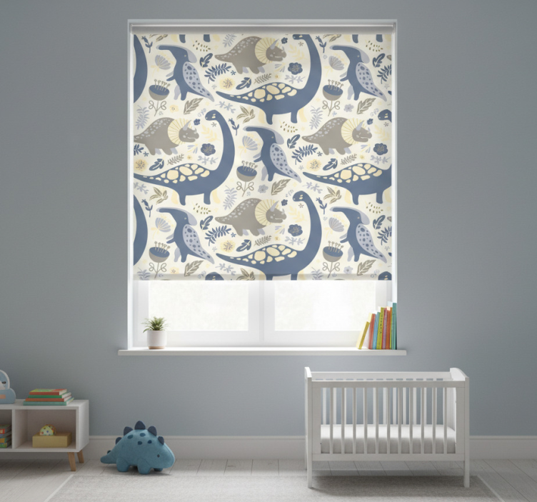 Referanse:: E7153Oppdag vår fantastiske rullegardin barn blå dinosaurer nordisk stil som er designet med en herlig grafikk av søte dinosaurer i en nordisk stil. Denne rullegardinen er ikke bare et praktisk tilbehør, men også en dekorativ løsning for barnerommet! Den gir en unik atmosfære med sitt lekne design som fanger barnas fantasi og skaper en koselig stemning.