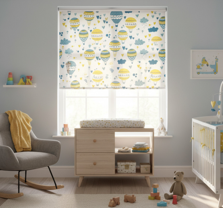 Rullegardin barn blå og gule ballonger