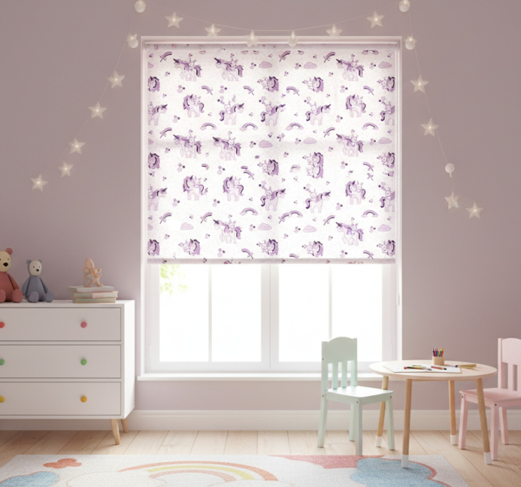 Referanse:: E7022Oppdag magien med vår Rullegardin barn enhjørning og kanin blant stjerner, designet for å bringe glede og fantasi inn i ditt barns rom! Med et grafisk design som kombinerer sjarmerende enhjørninger og søte kaniner svevende blant glitrende stjerner, skaper denne rullegardinen en drømmeaktig atmosfære. Den er perfekt for å inspirere til lek og kreativitet, samtidig som den gir et elegant preg til innredningen.