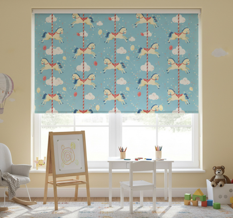 En rullegardin barn hestekarusell mønster rullegardin barn er ikke bare et funksjonelt element, men også en kreativ måte å transformere rommet på. Den fargerike designen kan inspirere til fantasi og lek, og gir et morsomt preg til ethvert barnerom. Med denne rullegardinen kan du enkelt skape en koselig atmosfære som både barn og voksne vil sette pris på!