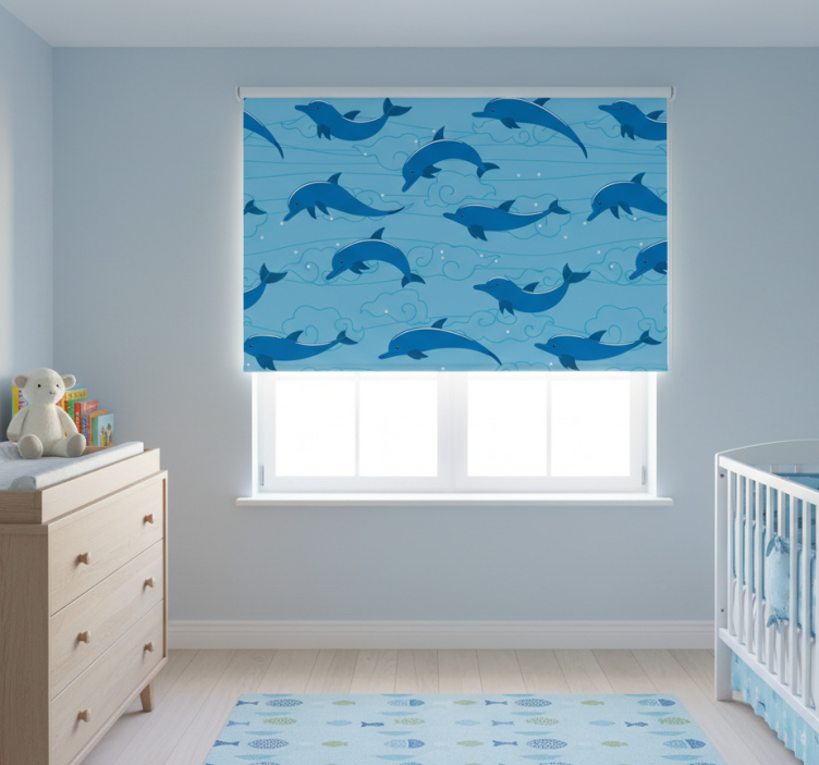 Rullegardin barn himmel med skyer og delfiner