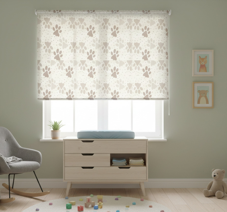 Velkommen til en verden av stil og funksjonalitet med vår rullegardin barn hundepote. Dette produktet skiller seg ut med sitt unike og grafiske design, som kombinerer lekne hundepote-mønstre med en moderne touch. Den er laget for å passe perfekt inn i barnerommet, og gir et friskt og koselig estetisk preg. Med enkel montering, rengjøring og demontering gjør den hverdagen lettere for deg som forelder!