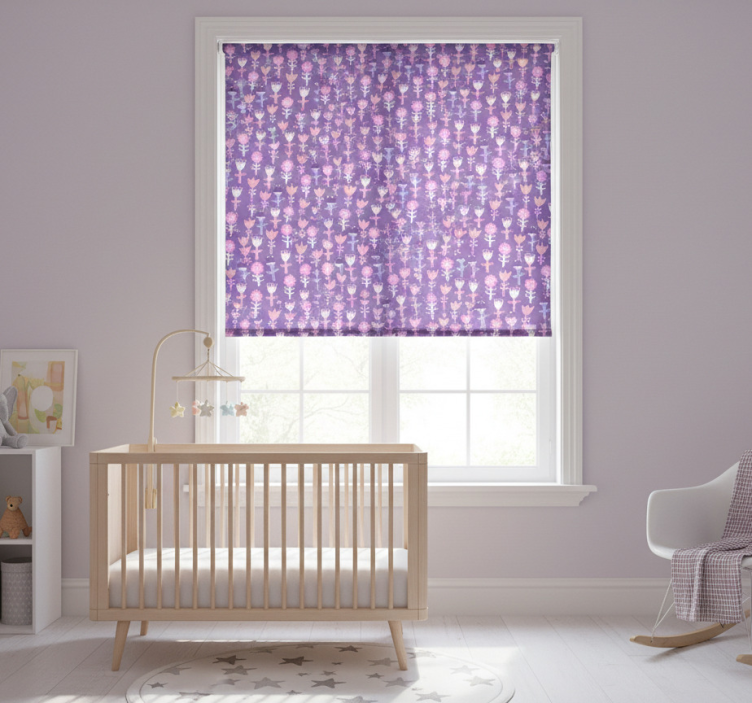 Rullegardin barn lilla toner abstrakt blomstermønster