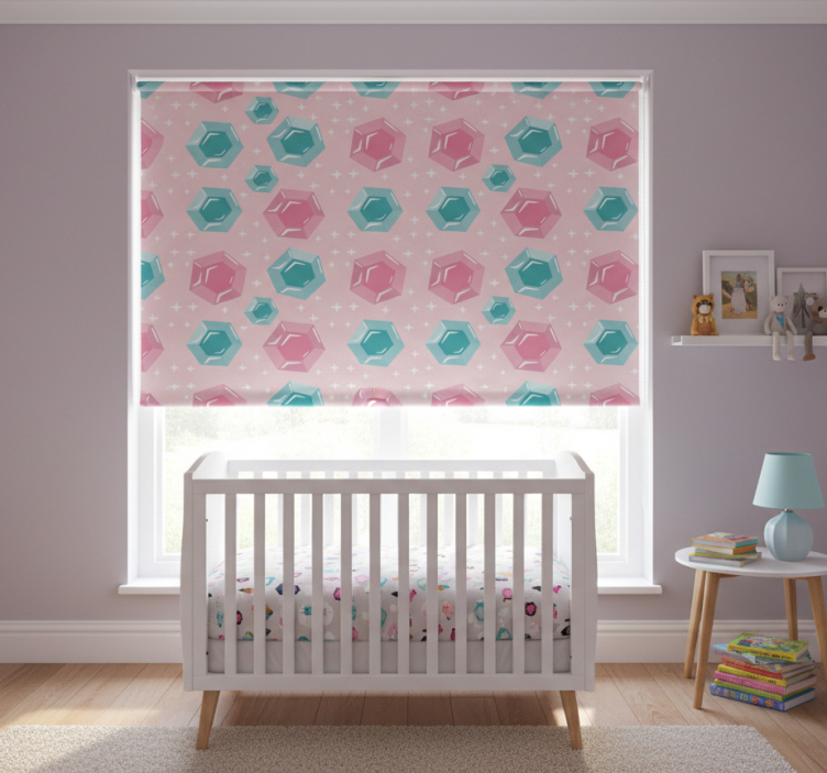 Referanse:: E7192Rullegardin barn med geometriske juvelfarger
