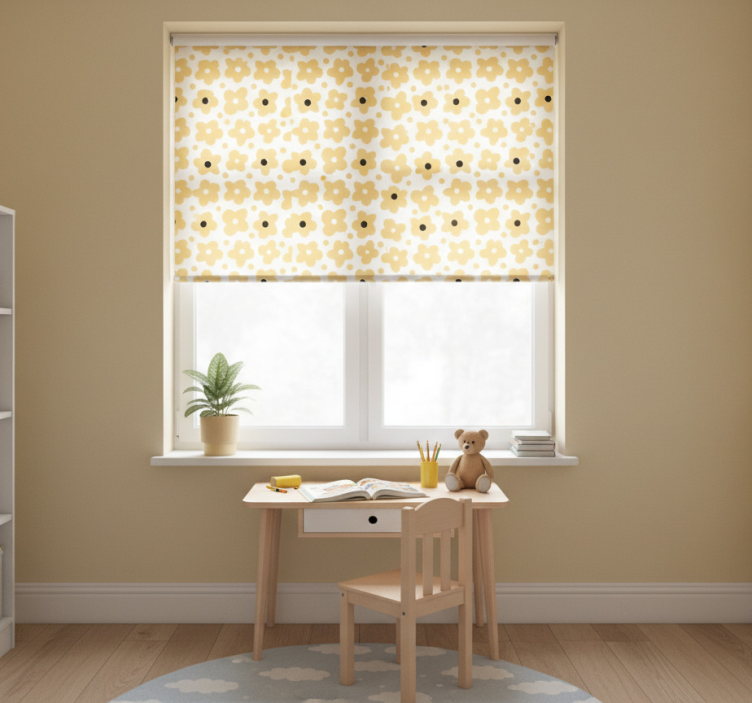 Rullegardin barn med gult abstrakt blomstermønster