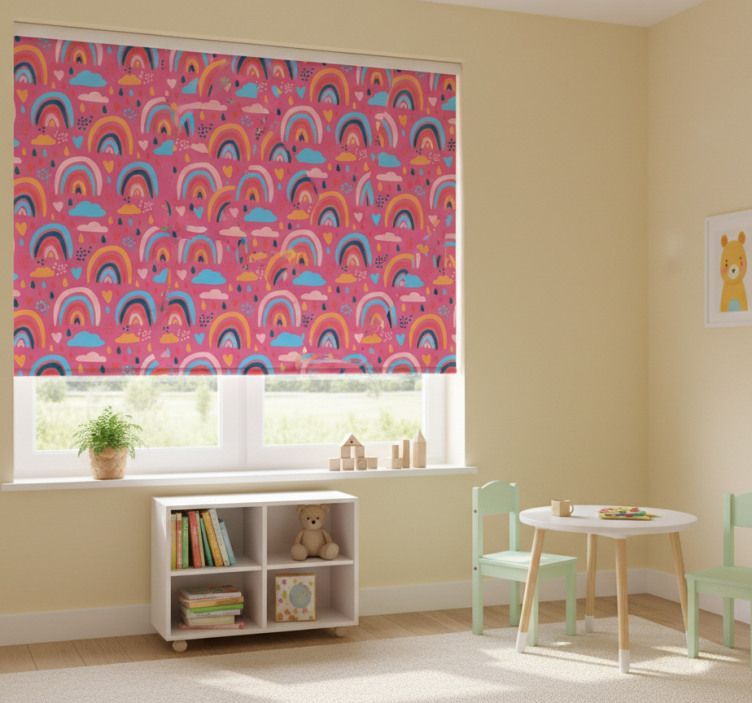 Rullegardin barn med lekne regnbuemønstre
