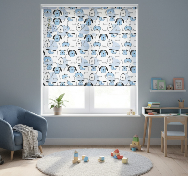 Rullegardin barn med mønster av blå hunder